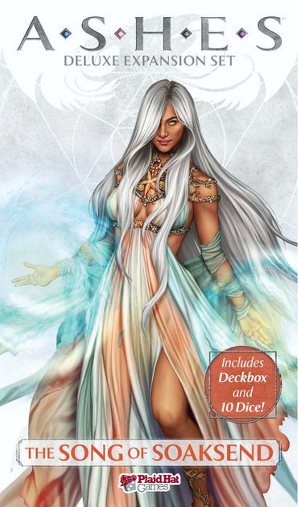 "Ashes: La Canción de Soaksend" es una expansión para el juego de mesa de cartas "Ashes: El Auge de los Nacidos del Fénix", con un sistema innovador ampliable que propone varias mecánicas para cambiar el género de los juegos de cartas personalizables, dejando el control de los nacidos del Fénix en manos de los jugadores.