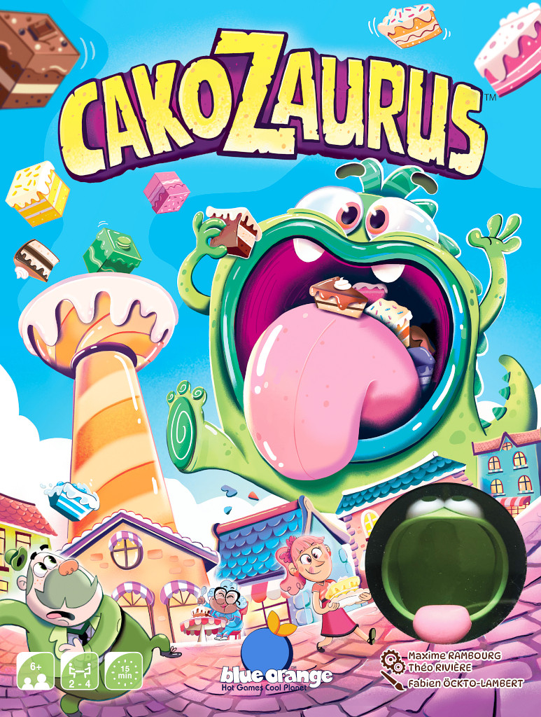En el juego de mesa "CakoZaurus", tu objetivo es completar los pedidos de los clientes a pesar de la presencia de un monstruo en la cocina que se comerá tus ingredientes si no tienes cuidado.