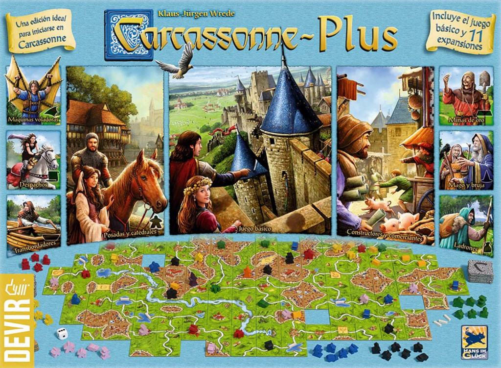 En esta nueva edición "Carcassonne: Plus" encontramos ni más ni menos que once expansiones, además del juego básico, todo ello con el nuevo y mejorado arte de la última edición. Disfruta de una experiencia a lo grande con las dos expansiones más celebradas del juego: "Carcassonne: Posadas y Catedrales" y "Carcassonne: Constructores y Comerciantes", incluyendo además los complementos de "El Abad" y "El Río".