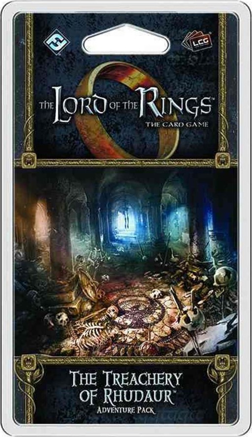 "El Señor de los Anillos: LCG – La traición de Rhudaur" es una aventura de sesenta cartas fijas para el ciclo Angmar despertado del juego de mesa "El Señor de los Anillos: LCG".