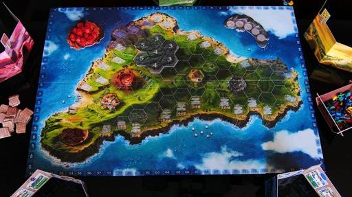 Uno de los juegos que más me llamó la atención desde que lo vi por esas grandes ilustraciones fue este juego basado en tribus de la Isla de Pascua que tienen que esculpir las famosas cabezas gigantes y llevarlas hasta los mejores lugares de la isla, y es que las ilustraciones de Miguel Coimbra son toda una delicia visual.