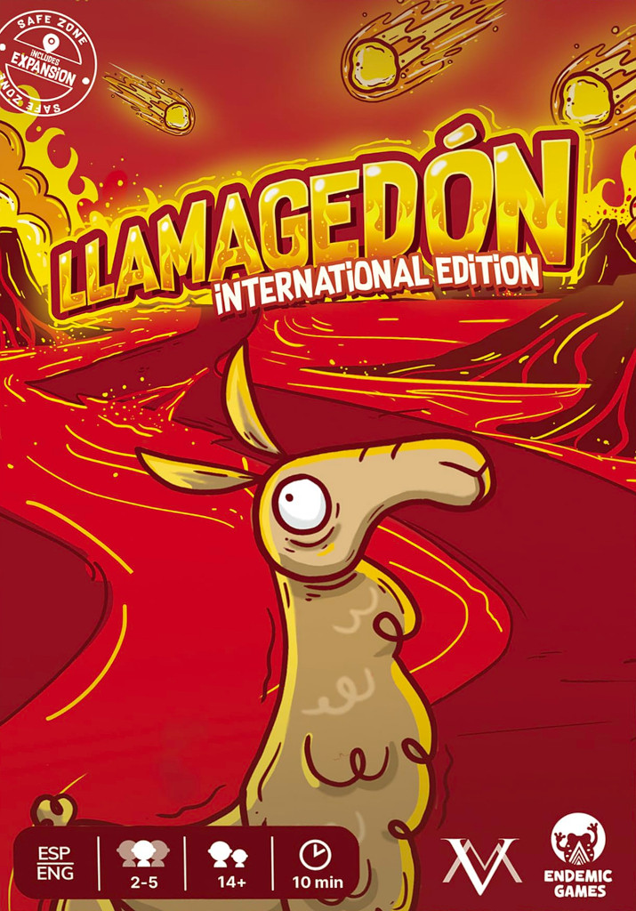 "Llamagedón: International Edition" es un juego de cartas ligero y con un toque estratégico que combina mecánicas como gestión de mano, chúpate esa y colección de conjuntos.