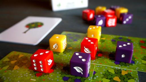 Pero no sólo usarás cartas, también dispondrás de quince dados que representan el aumento de tu cosecha junto a dos fichas que representarán la fruta "podrida". Éstas te permiten una pequeña ayuda, ya que podrás saltarte alguna regla de colocación para poner una carta en juego; pero claro, a cambio vendrá con una pérdida de puntos. Así que debes decidir si te merece la pena jugarla... y cuando.