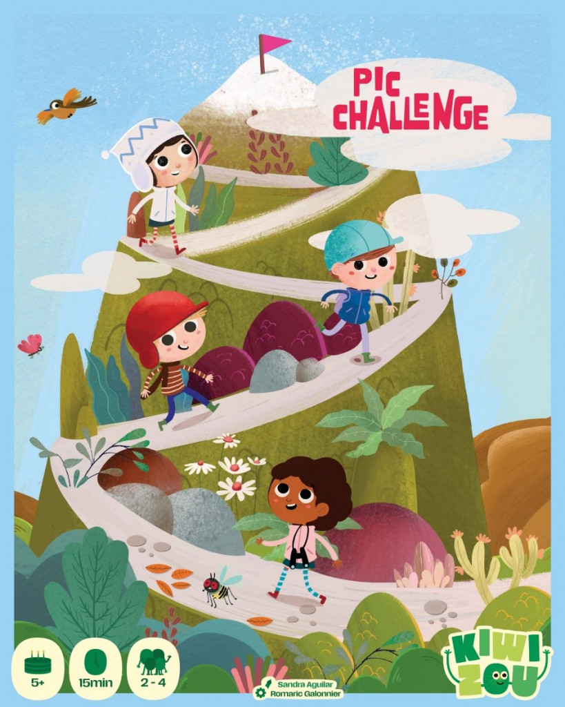 "Pic Challenge" es un juego de carreras lleno de giros y sorpresas con un suspense que se mantiene hasta el final de la partida. Un tablero original que asciende hasta la línea de meta. Un juego de recorrido en el que juegas con cartas en lugar de dados.