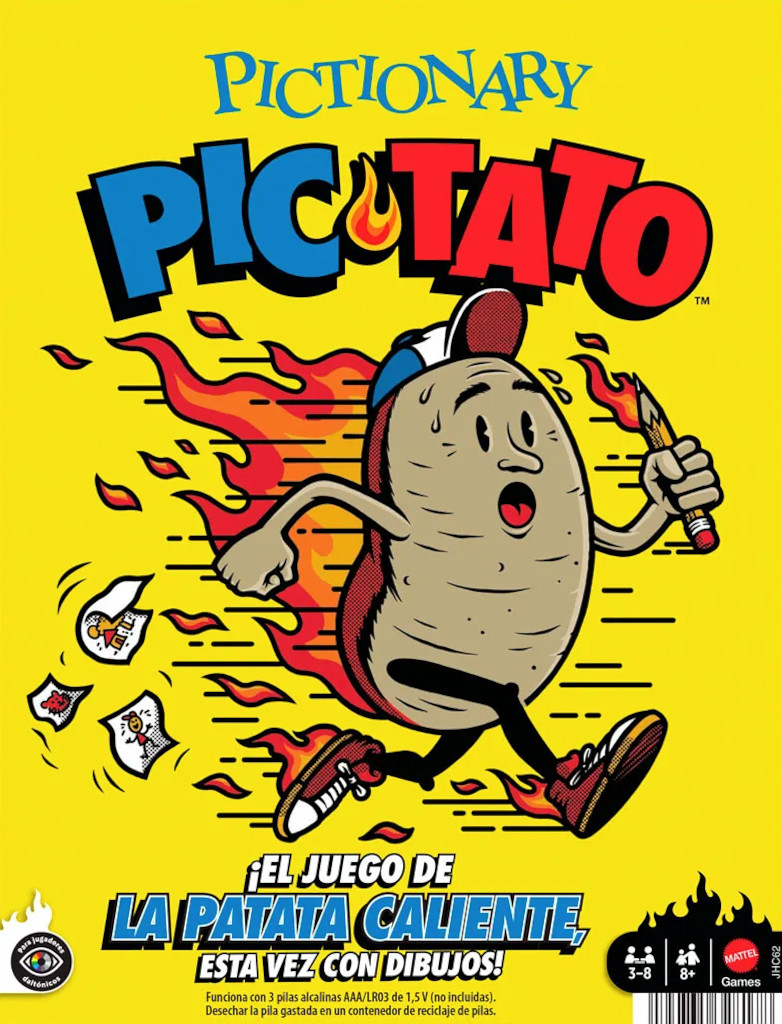 "Pictionary Pic-Tato" es un juego de mesa rápido y frenético en el que los jugadores deben dibujar, adivinar y pasar el "pic-tato" antes de que termine la música. Prepárate, ¡listo... a dibujar!