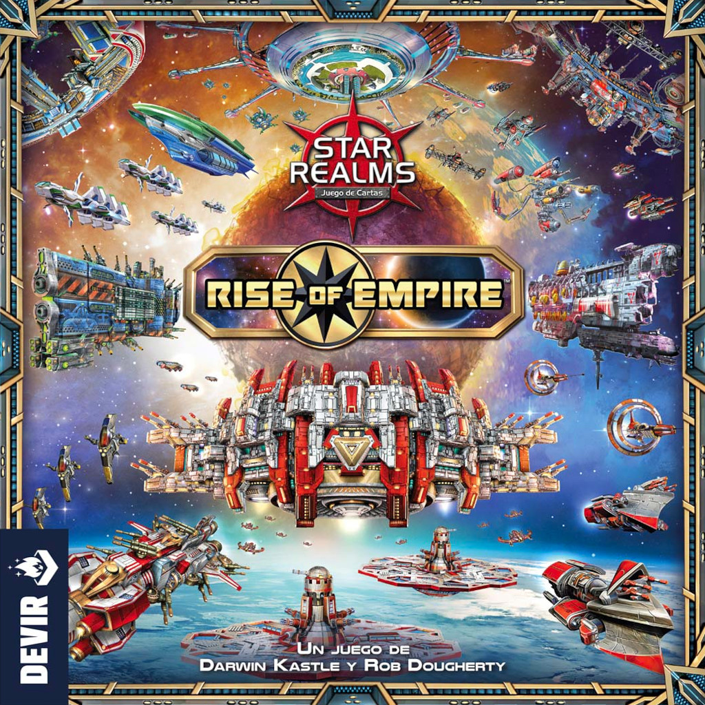 "Star Realms: Rise of Empire" es una nueva precuela independiente del popular juego de la serie "Star Realms" con ciento cuarenta y una cartas y una campaña de escenarios heredados de doce partidas. "Star Realms: Rise of Empire" presenta tres facciones completamente nuevas: el consorcio, los carroñeros y el reino.