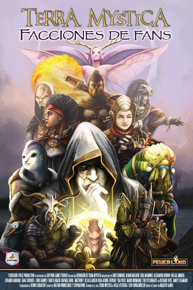 Amplía la rejugabilidad de "Terra Mystica" con veinte nuevas facciones en diferentes colores y terreno: archivistas, arquitectos, atlantianos, buscadores de oro, caminantes del fuego, chamanes de la nieve, Chash Dallah, conspiradores, Dynion Geifr, fuegos fatuos, genios, geólogos, goblins, hijos del Wyrm, los iluminados, metamorfos, reino de las ascuas, selkies, tesoreros y viajeros del tiempo.
