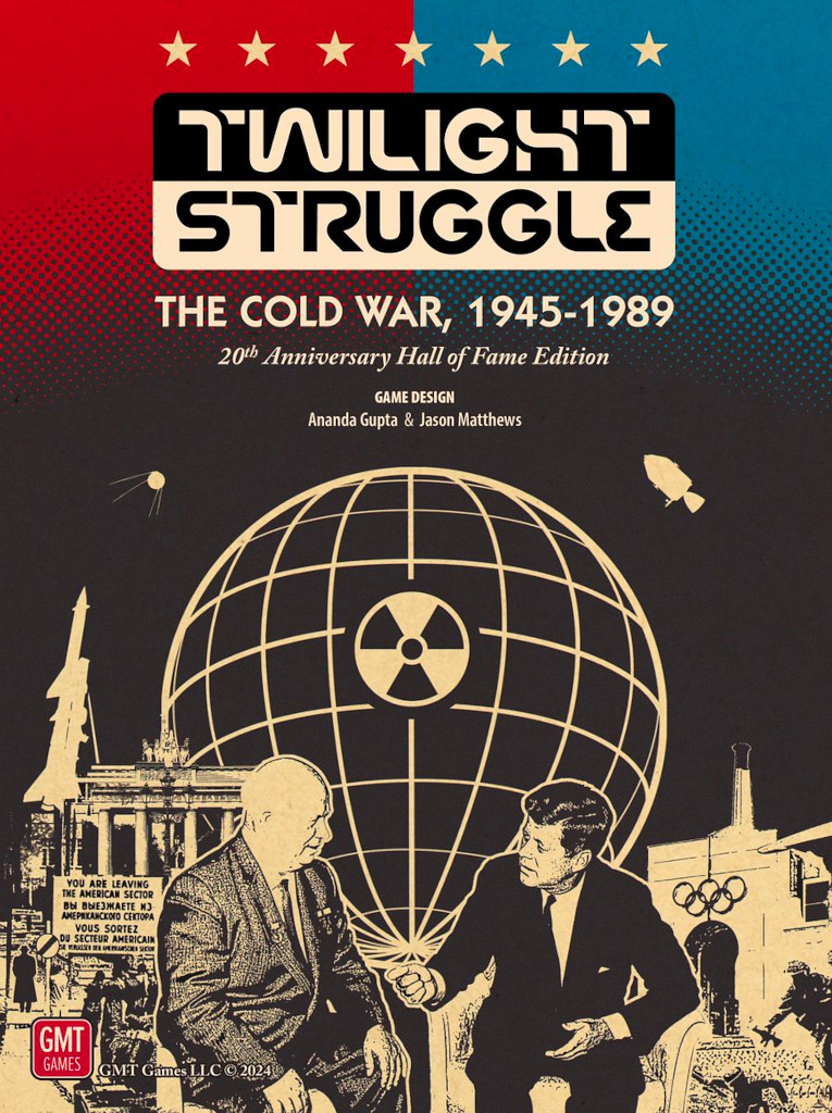 "Twilight Struggle: 20th Anniversary Hall of Fame Edition" añade aún más belleza y opciones al juego de mesa original. Aquí algunas de las novedades que trae esta edición: una nueva caja de juego diseñada por el incomparable Terry Leeds; un mapa doble, con el nuevo mapa de Terry Leeds en el anverso y el mapa conocido de la edición deluxe de Mark Simonitch en el reverso; las variantes "Turn Zero" y "Alternative Space Race" incluidas; un nuevo escenario de historia alternativa, "Red Sun Rising", con cartas nuevas; una colección de cartas promocionales, incluyendo los packs promocionales de micromecenazgo 1 y 2 y una selección de cartas promocionales de ediciones extranjeras; un folleto de trasfondo que incluye ensayos retrospectivos de los diseñadores.