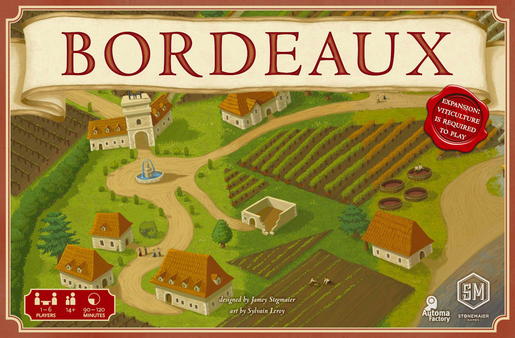 El tablero alternativo Bordeaux, para el juego de mesa "Viticulture" ofrece a los jugadores un impulso inicial, cuatro estaciones completas de colocación de trabajadores, un orden de turno lleno de beneficios, una nueva acción principal de nivel "experto" que mejora permanentemente una acción, ajustes en acciones existentes, un mercado de comercio, cartas de viña y pedidos de vino visibles para elegir al robar, y la conversión final de uvas, vino y monedas en puntos de victoria.